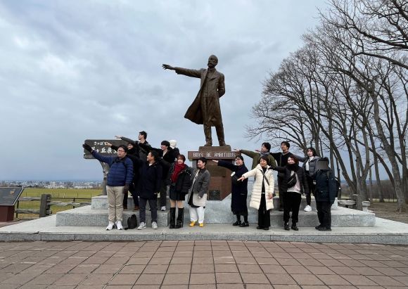 クラーク博士と同じポーズをして記念撮影をしました。